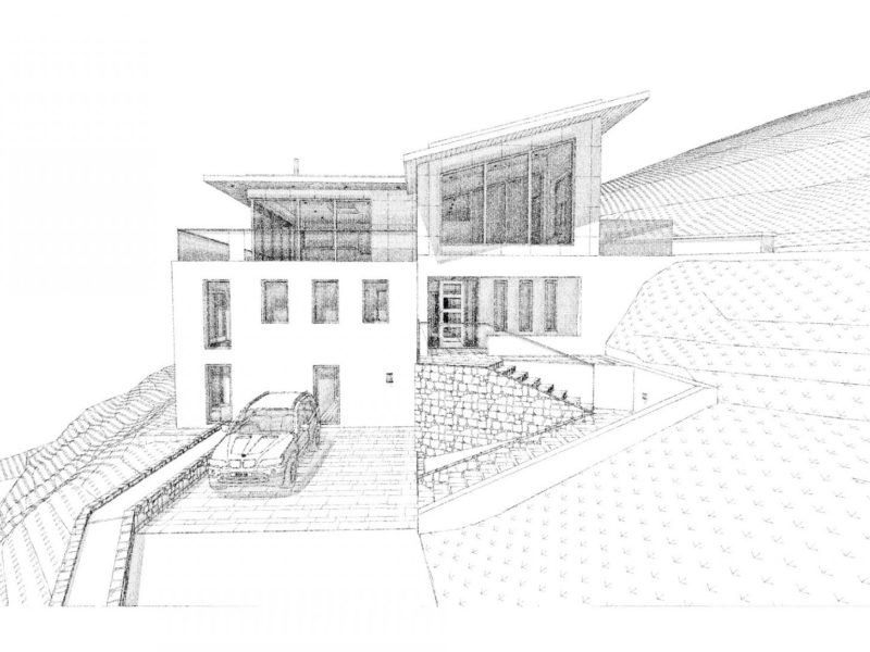 The existing house consists of a two-storey dwelling with a mishmash of poor quality extensions. The existing house has a total floor area of 209.8Sq.m. The site is a predominantly South-East facing slope with a front boundary along Vico Road and with uninterrupted sea views from first floor level. This existing mature site has mature screening to all boundaries, Mature trees and hedge provide screening from Vico Road and prevent overlooking of adjoining properties. Damp, leaking roofs, and dangerously steep internal and external steps are just a few of the problems with the existing house. It is also highly inefficient in terms of energy efficiency.